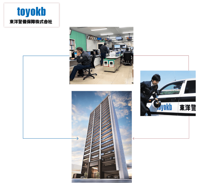 対象の建物周辺及びエントランスや駐車場などでの不審者対応(但し、定期巡回対応の場合は有償になる場合もあります)